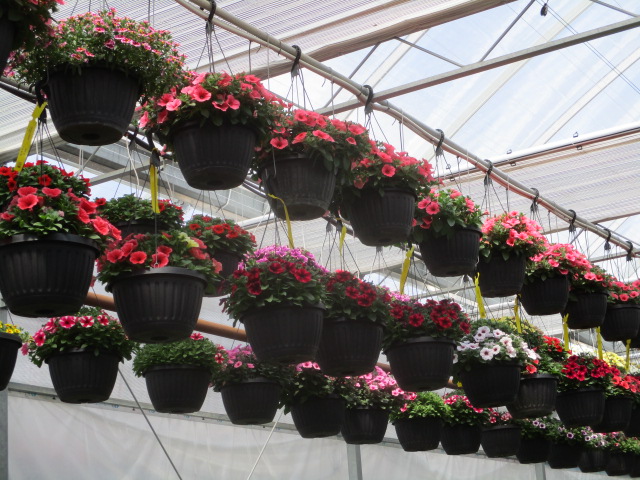 As the hanging baskets fill, they trail more and more over the sides. Transporting these without damage can be difficult which is why distribution is limited to early season when plants are still more compact.