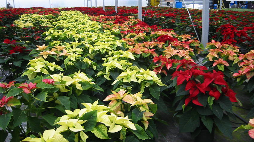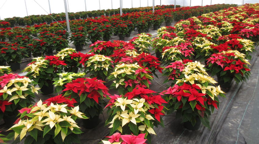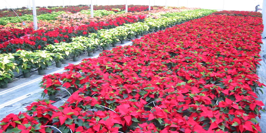 Poinsettias are started in June and July to be ready for Christmas. It's a long crop that needs a lot of care.