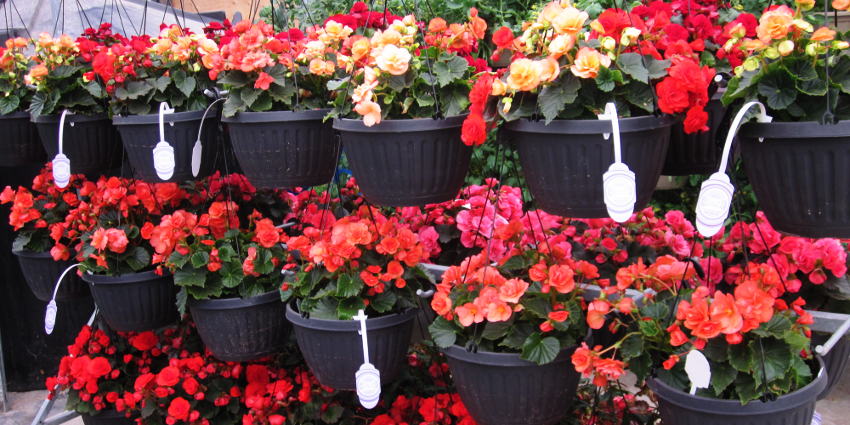 One of the best shade baskets are begonias. All the begonias we use in baskets can tolerate both sun and shade making them extremely versatile.