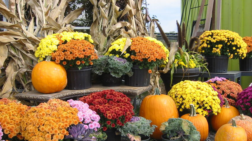 Fall offers include simple mums as well as kale and mixed planters. Fall planters typically contain at least one perennial that can be planted into the garden before winter.